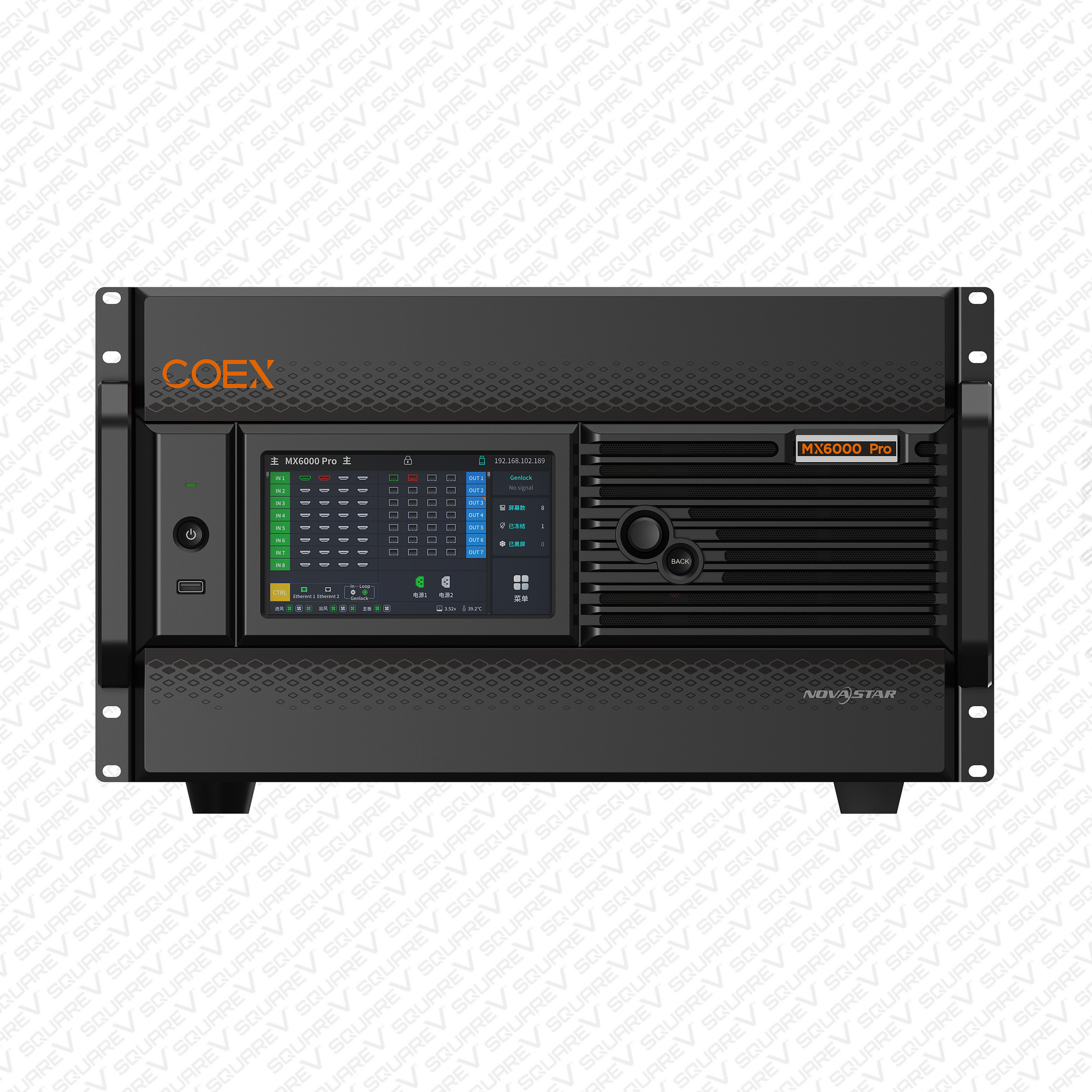 The MX6000 Pro is a professional 8K LED display controller from NovaStar, designed as part of the COEX control system series. Its remarkable features include 12-bit color depth, 360 Hz capability, real-time multi-screen scaling, 0-frame latency, and HDR supportability providing precise brightness control, true-to-life color fidelity, and an excellent image quality. Its card-based modular design is specifically tailored for future LED displays allowing for flexible input and output card configurations that are stable and easy to maintain. With a compact 6U size, it supports up to 32x 4K or 8x 8K video inputs with a maximum load capacity of 141 million pixels making it ideal for large-screen configurations.